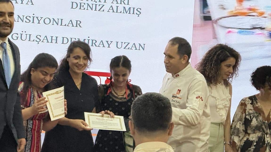 Okulumuz yiyecek içecek öğretmeni Gülşah DEMİRAY UZAN eşliğinde okulumuz öğrencilerinde 10-A Berfin PİŞKİN ve 12-A Elif Küfra REFREF yarişmada mansiyon ödülü alarak bizleri onurlandırmıştır. Yiyecek İçecek öğretmenimiz Gülşah DEMİRAY UZAN VE Rehber öğretmenimiz Elif BİLDİK hocalarımıza katkılarından dolayı teşekkür ederiz.